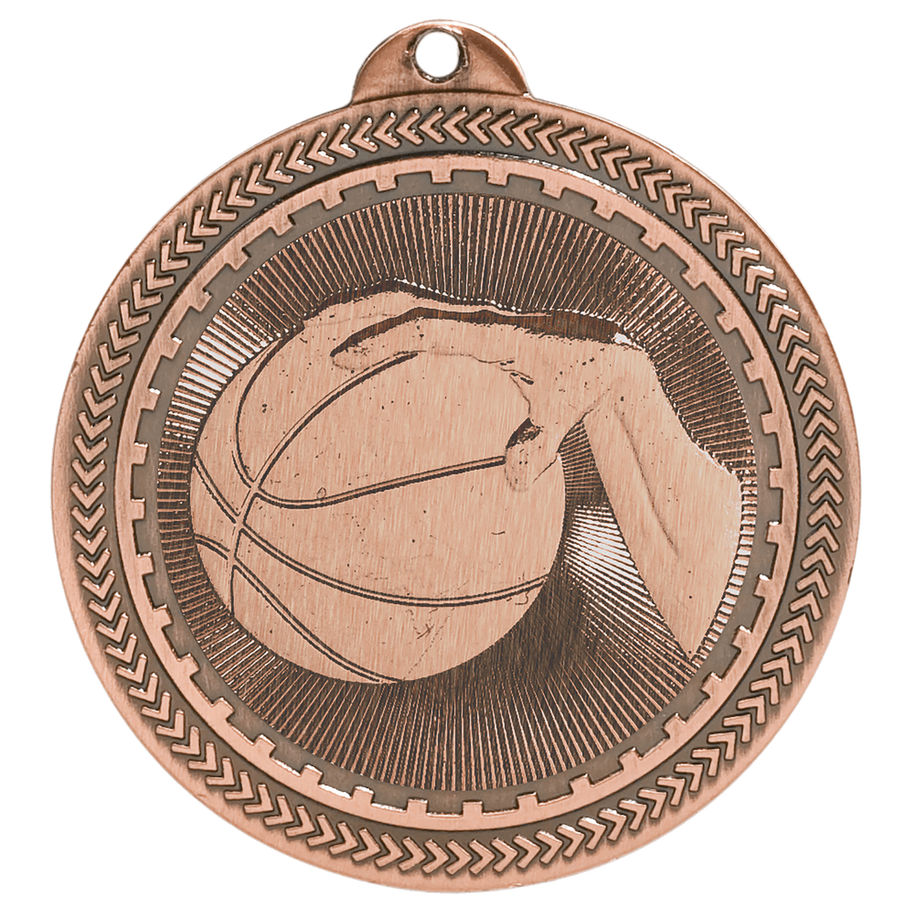 2" Antique Bronze Basketball Laserable BriteLazer Medal | Size: 2" | Material: Iron | Personalization available. Contact us for volume or organization pricing.